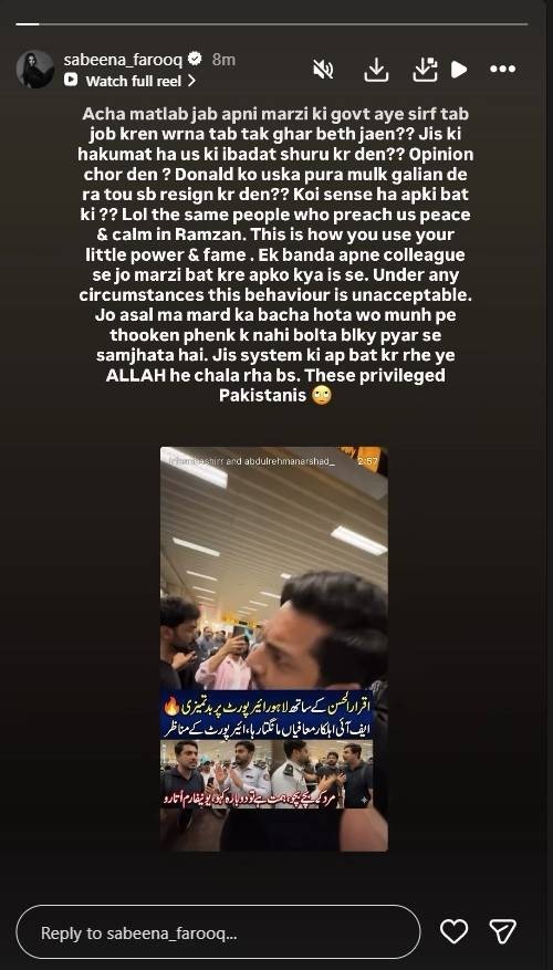 Pakistani actress Sabeena Farooq publicly called out Iqrar Ul Hassan over a viral airport incident.