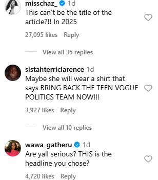 However, the caption did not sit well with many social media users. Several netizens expressed frustration, calling the headline unnecessary and trivial. One Instagram user commented, “Clothes. She’s going to wear clothes.” Another wrote, “Is this really the title? Are you all serious?”