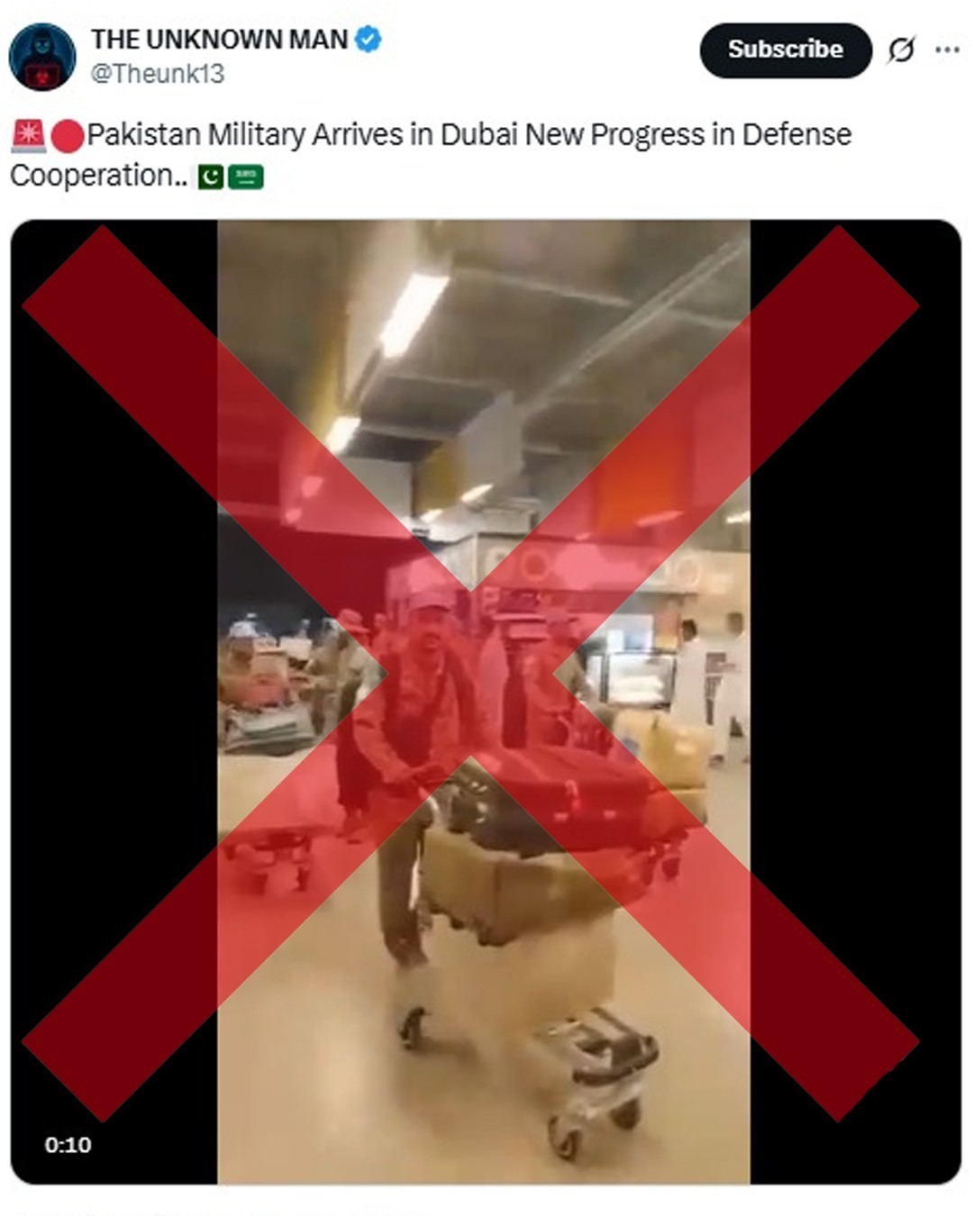 A video circulating on several Indian social media accounts has been shared with the false claim that Pakistani soldiers had landed in Dubai before being deployed to the Saudi–Yemen border. Some of these accounts even added unverified details about “huge salaries” supposedly being paid to the troops.