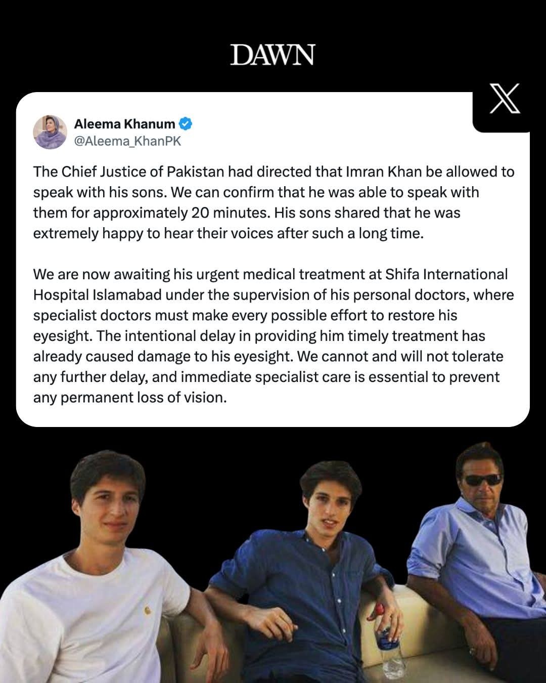 Imran Khan speaks to sons following SC orders