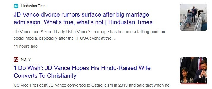 The Indian media reacted sharply to his remarks. India Today ran the headline, “How JD Vance threw his Hindu wife, Usha, under the bus for electability.” Meanwhile, Times of India wrote, “‘Your wife is not agnostic, she is Hindu’: JD Vance slammed for hoping Usha Vance will convert to Christianity.”